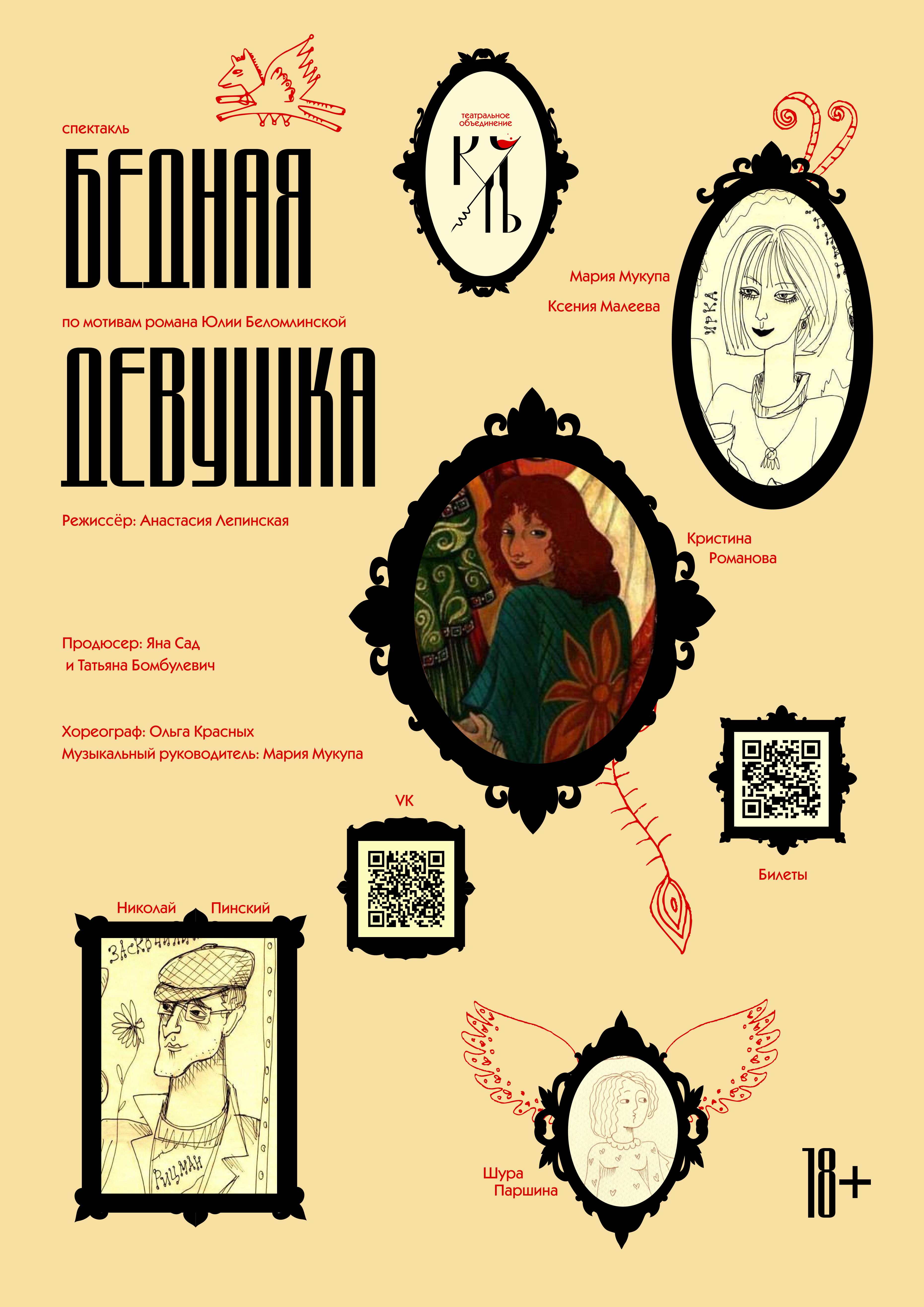 “Бедная девушка” — не унывающая героиня — в поисках себя в незнакомой стране. Городской романс и арии мюзиклов, Нью-Йорк, Париж и любимый Питер. Путь от художницы до Доминиктрисы и победа смертью силой великой литературы и вселенской любви.